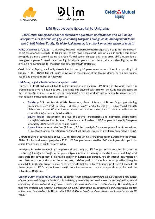 Como socio financiero y estratégico de los directivos desde hace más de seis décadas, Unigrains ha aportado su experiencia y su valor añadido a más de 1000 empresas y gestiona actualmente 964 millones de euros